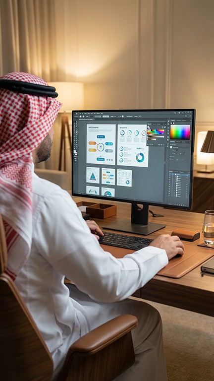 في خدماتي نقدم لك حلولًا بصرية متكاملة تجمع بين الإبداع، الدقة، والهوية، لتقديم أعمال احترافية